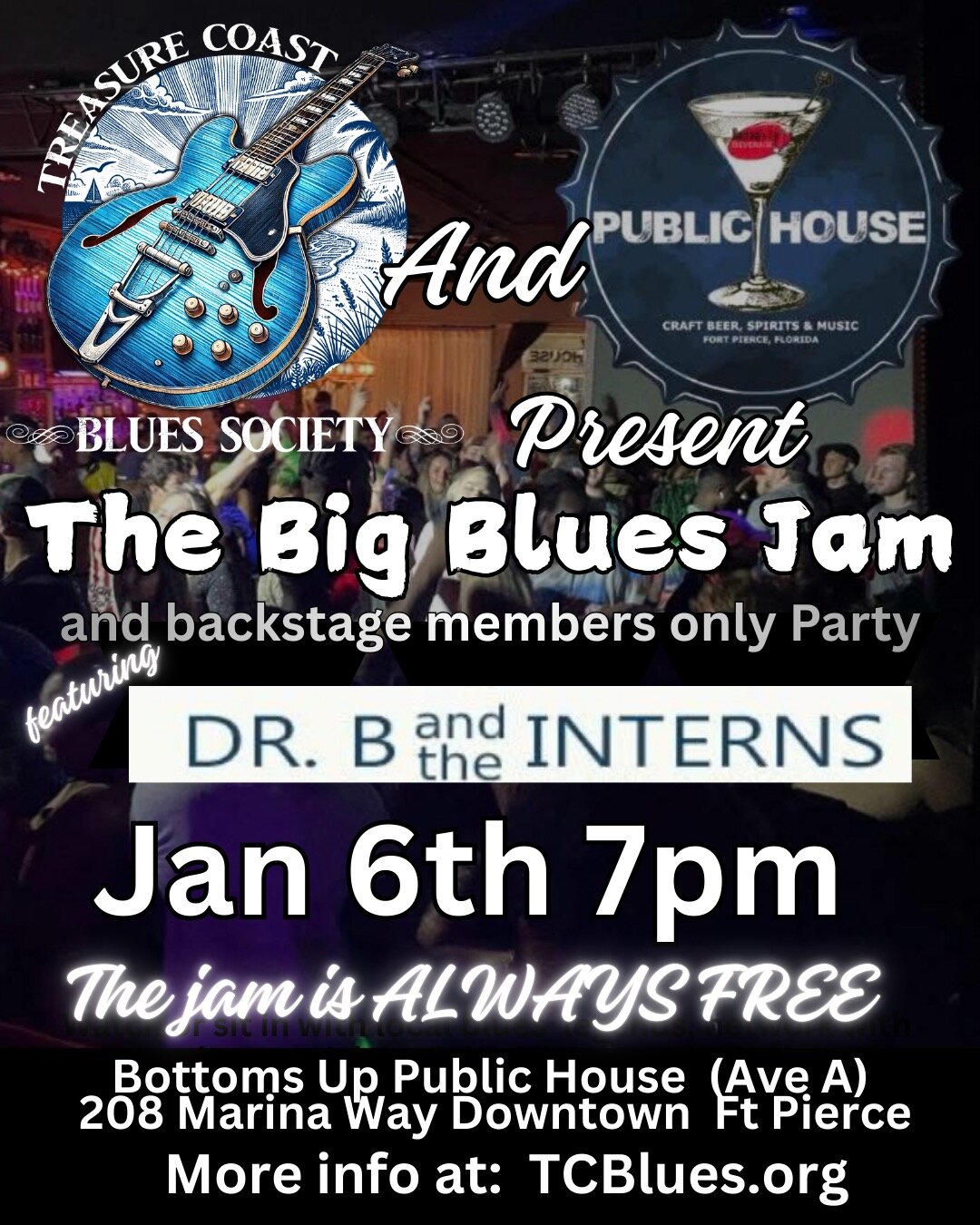Join us at 6pm for our ‘Annual TCBS Members Meeting’ where we will be accepting nominations for two new positions on the TCBS Board, a new Secretary and a new Treasurer. Followed by our first BLUES JAM of 2026 from 7pm-10pm.